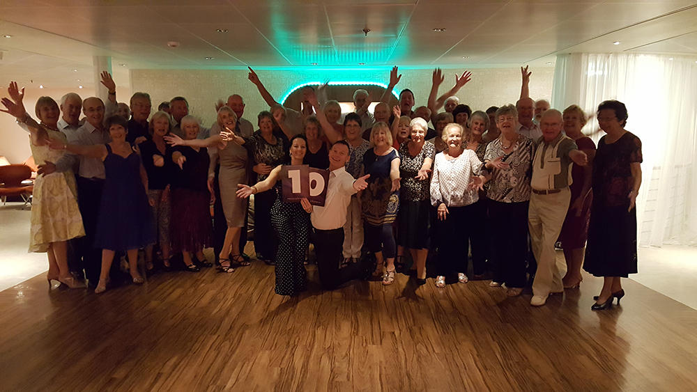 Ian & Penny are very driven in their hobbies as well as their business. They were competitive Championship Ballroom & Latin dancers (think Strictly), who have competed internationally for their country. Neither had danced a step before attending a beginners ballroom group lesson in early 2006. From then on they were hooked, and their focused dedication pushed them through the levels to a be a high ranking couple in the Senior 1 (over 35’s) competitive division. They are now regular Dance Instructors & Dance Hosts onboard cruise ships, and you can see which cruise they are booked on by clicking through to the Future Cruise Calendar page. Ian & Penny also take their dance hosting and teaching ability a stage further by organising and hosting their ‘Dance Breaks with Ian & Penny’, and their ‘Dance Classes with Ian & Penny’.